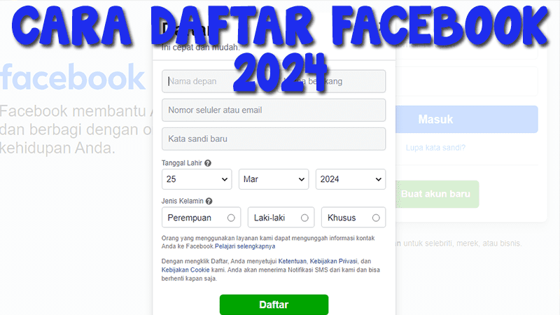 Cara membuat akun Facebook sangatlah mudah dan gampang, tetapi sangat sulit untuk orang awam yang baru mengenal sosial media. Untuk itu di sinilah saya akan membagikan tutorial bagaimana caranya untuk mendaftar akun Facebook dengan mudah dan cepat.